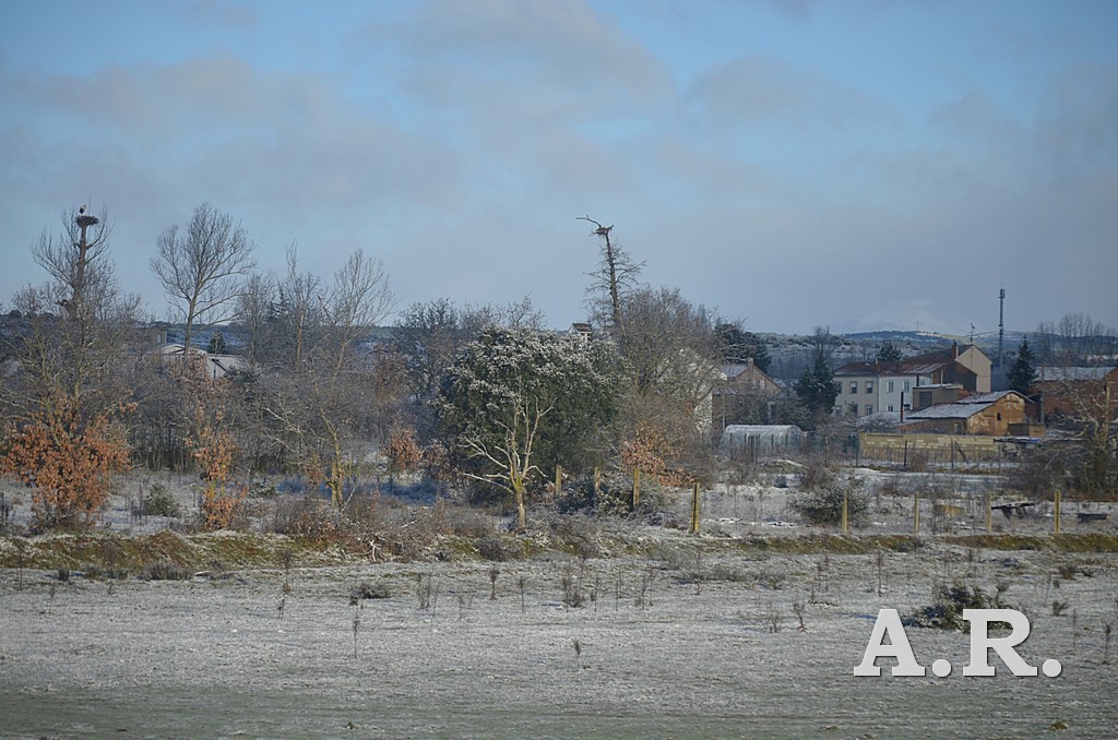 Fotografía. Paisaje :Nevada en Castilla, nidos de cigüeñas. Landscapes of Spain.Snowy landscape with stork nests